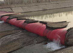 橡膠壩使用壽命短(橡膠壩采用的是再生橡膠原料,壩袋易老化,容易被上游漂浮物或尖銳物損壞,從而降低使用壽命);運行管理難度大(洪水過后一旦壩面淤積較厚,要求人工清理,否則壩袋不能正常升起蓄水,增加了后期的人工費用)。充水式橡膠壩冬季冰凍容易損壞壩袋,而充氣式橡膠壩不能調節(jié)壩高。